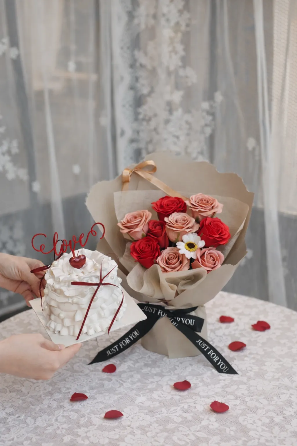 4 inches scarlet Whisper Cake + Soap Roses Bouquet Set